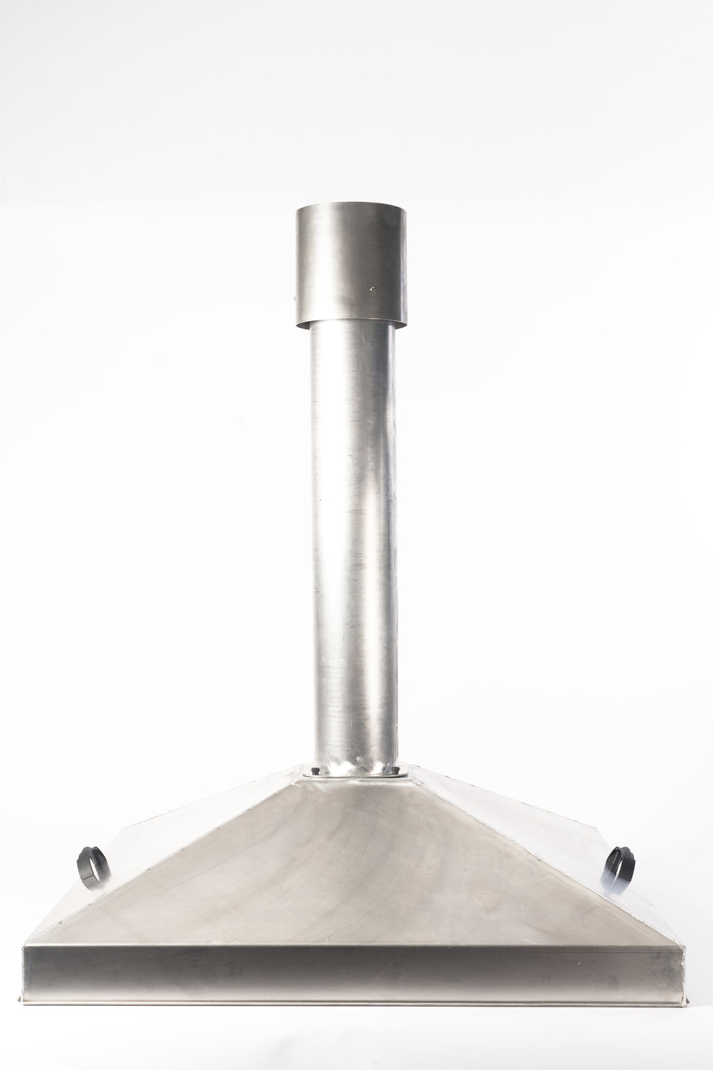 Der Abluftvolumenstrom wird über die Haube und den Kamin geführt und zusammengefasst. Ein Windschutzkragen mindert die Seitenwindanfälligkeit am Kaminaustritt und hält so die Strömungsverhältnisse im Kamin konstant.