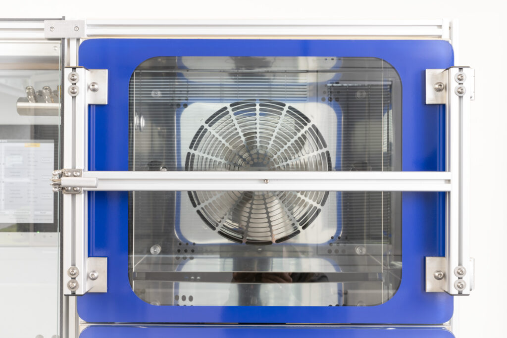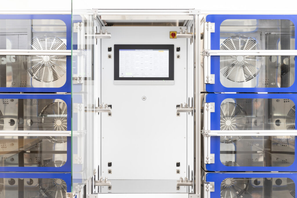 - Beidseitige Anschlussmöglichkeit eines Kammer-Racks mit je bis zu drei Prüfkammern