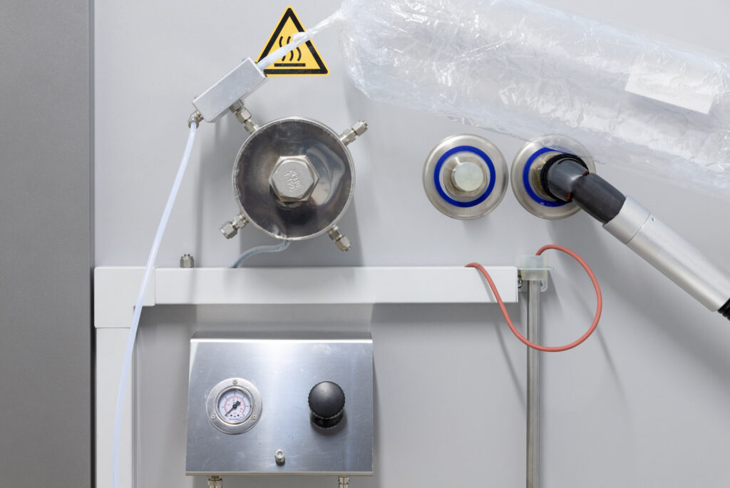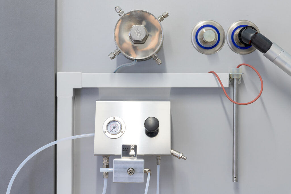 The EKV pre-dilution device for VOC emission test chambers combines both work steps in a single one, which increases your efficiency in everyday laboratory work. The EKV is a dilution system operated by compressed air with a gas jet pump (Venturi nozzle) for the active suction and dilution of air samples at the sample connection of an emissions test chamber.